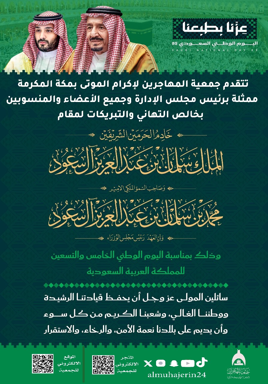 يسر جمعية المهاجربن لإكرام الموتى أن تهنئكم بــ #اليوم_الوطني_السعودي95 ، وكل عام والوطن بخير.